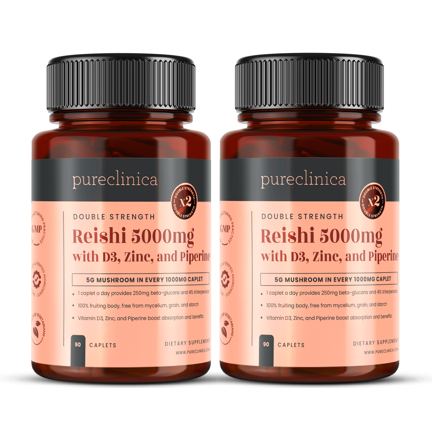 Each caplet delivers the concentrated power of 5,000 mg of whole Reishi mushroom—standardized to 25% Beta-glucans that support immune defense and 4% triterpenoids that aid healthy inflammation response and liver protection. With 1000 IU of Vitamin D3 to strengthen immune resilience and bone density, plus 15 mg of Zinc for antioxidant protection and cellular repair, this is a clinically strong formula. Black Pepper Extract is added to improve absorption—so you actually get the benefits in just one easy caplet per day.
