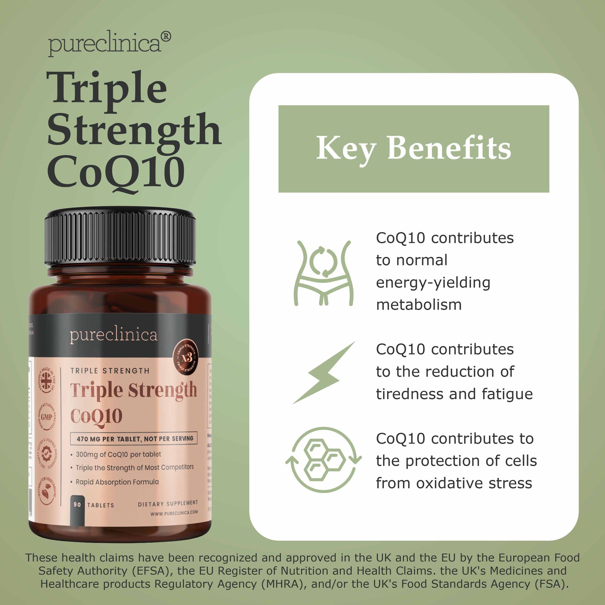 • Triple the amount of CoQ10 per tablet compared to most other leading brands.