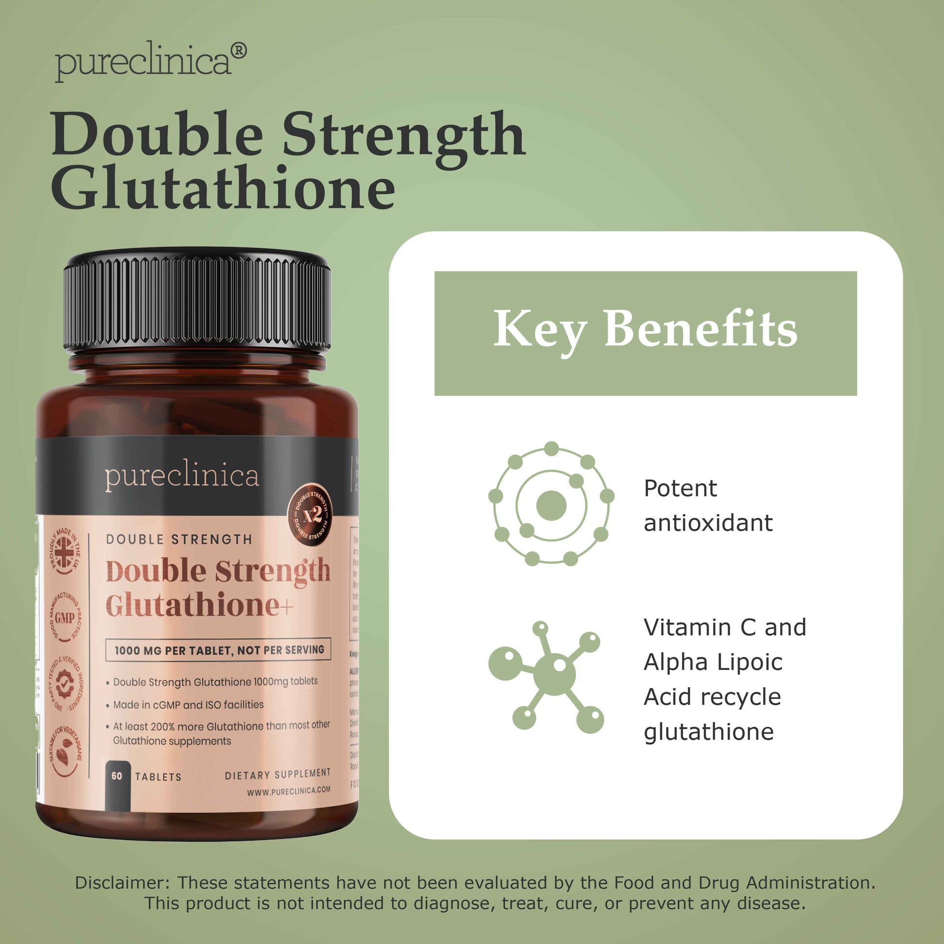 Glutathione has to two states, active and oxidized. Most Glutathione supplements contain cheaper oxidized glutathione. Double Strength Glutathione is made with Reduced form Glutathione (GSH).