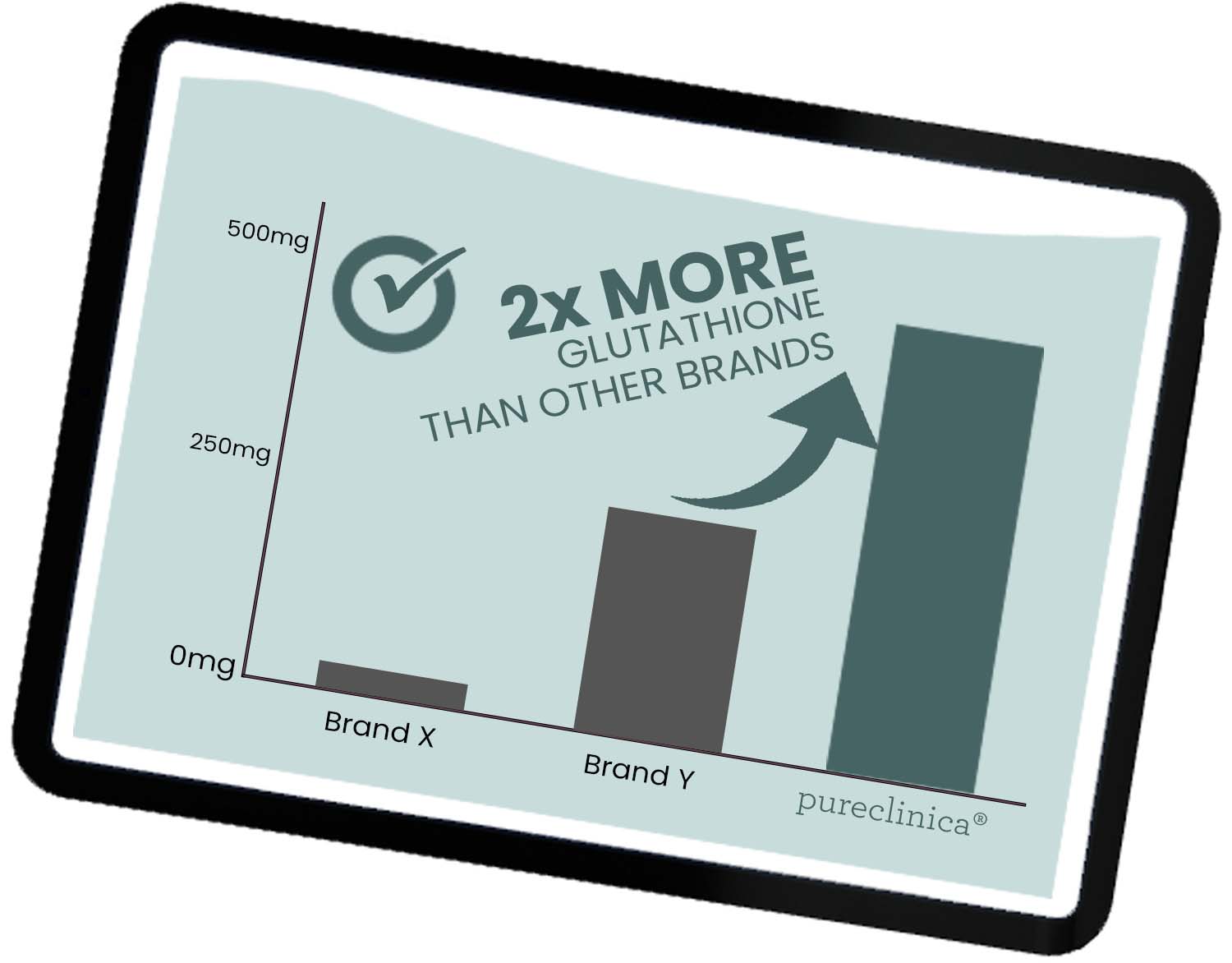 Our 2x-strength Glutathione gives you a complete dosage in just one tablet, making it a simpler and more cost-effective option.