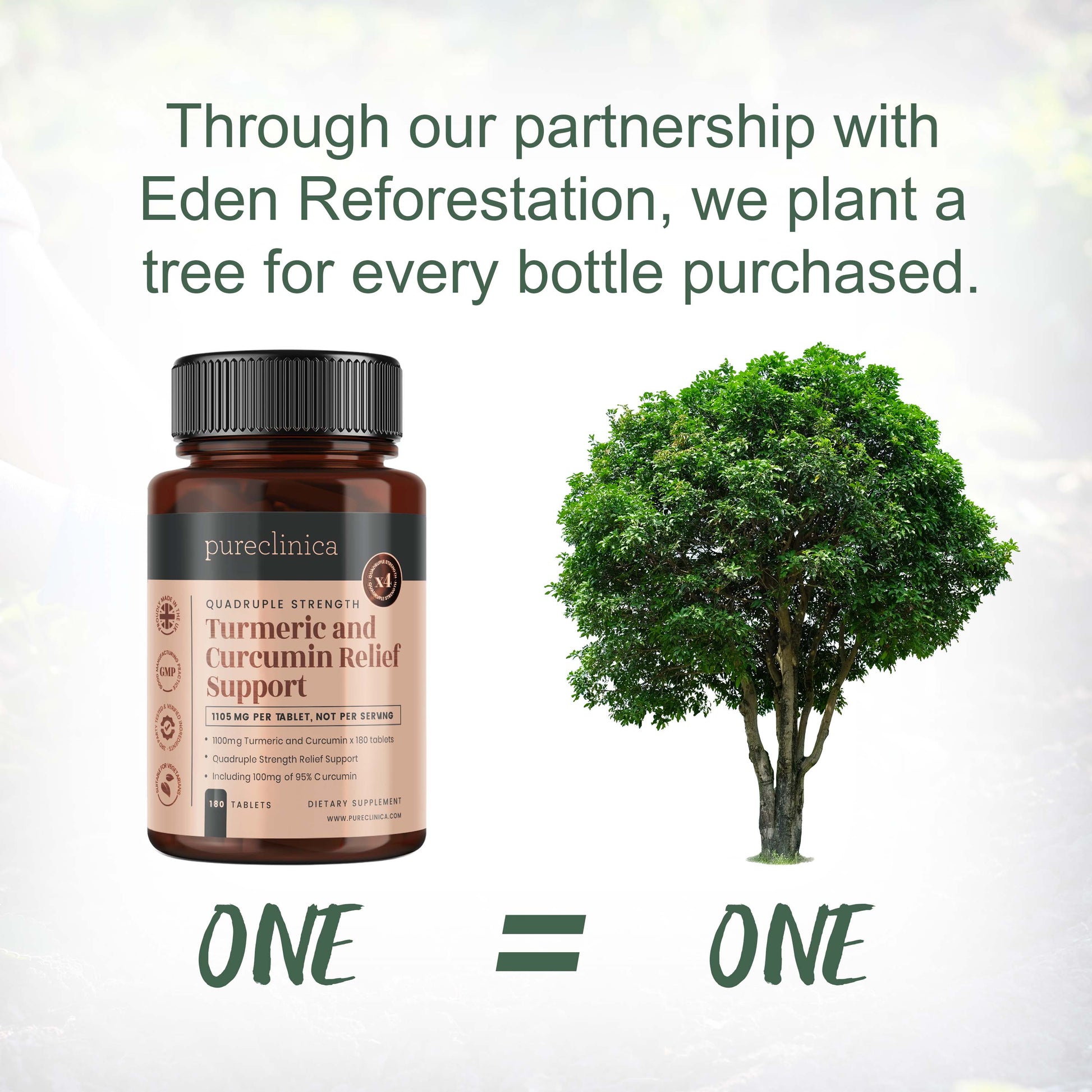 Weighing in with a whopping 1000mg of broad spectrum turmeric root extract (100mg of 10:1), AND 100mg of 95% pure curcumin, Turmeric and Curcumin Relief Support provides our most effective dose in every tablet.