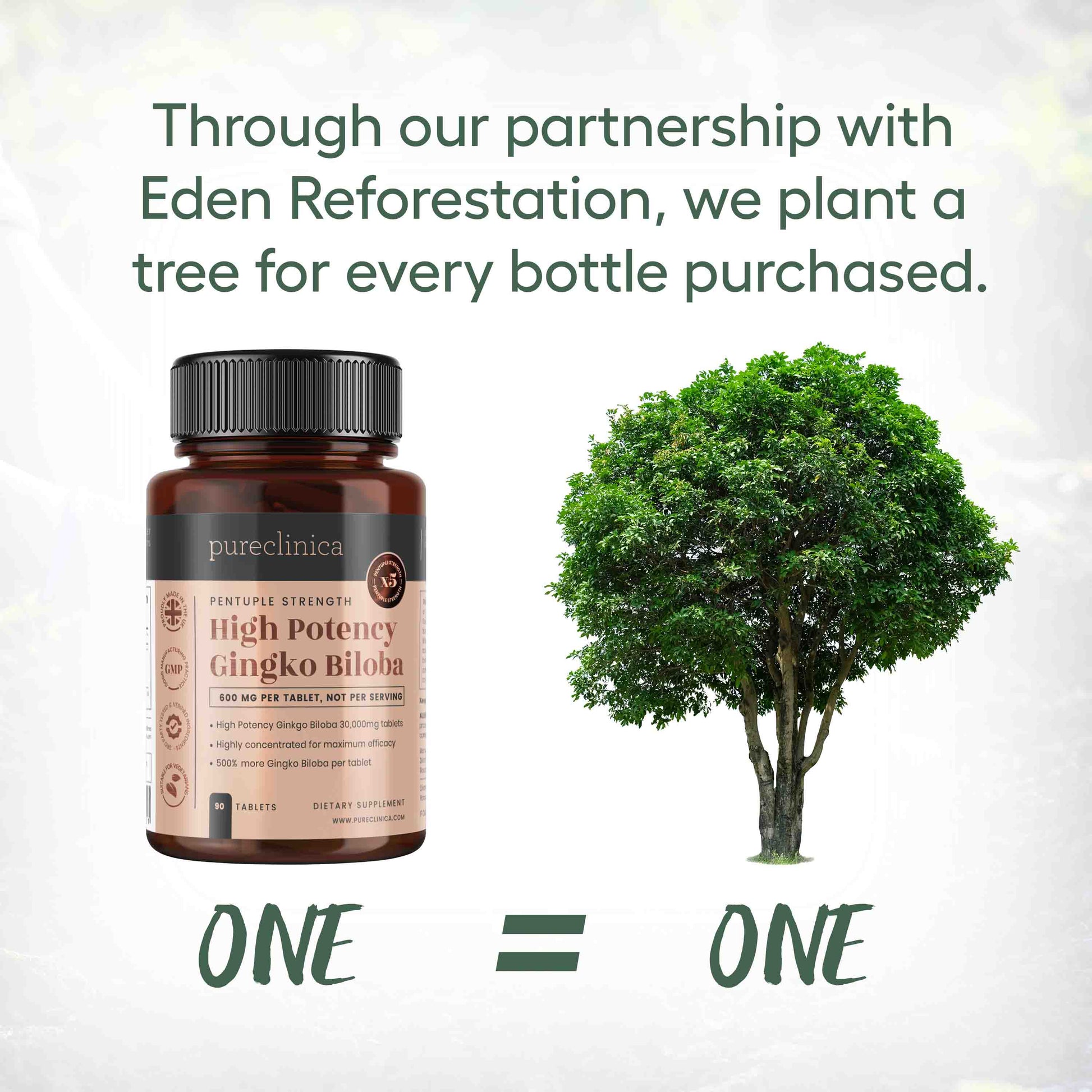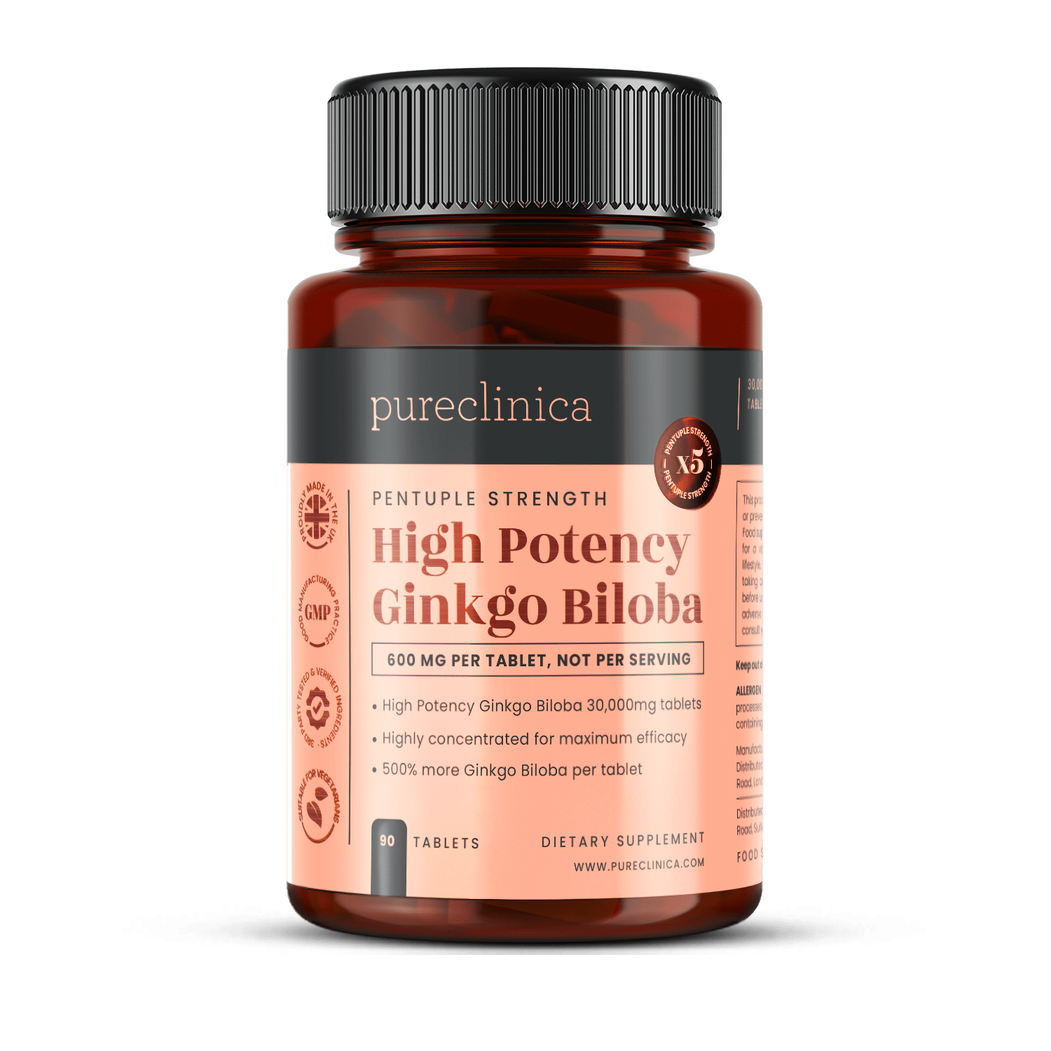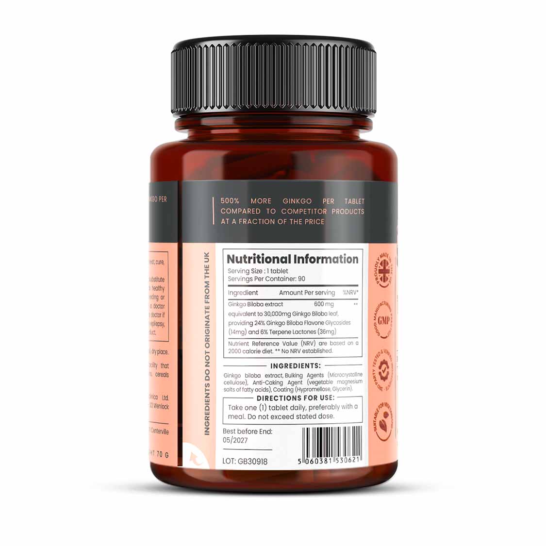 Each tablet contains 600mg of highly concentrated Ginkgo extract, equivalent to, and packed with all of the benefits of 30,000mg of Ginkgo Biloba leaf.
