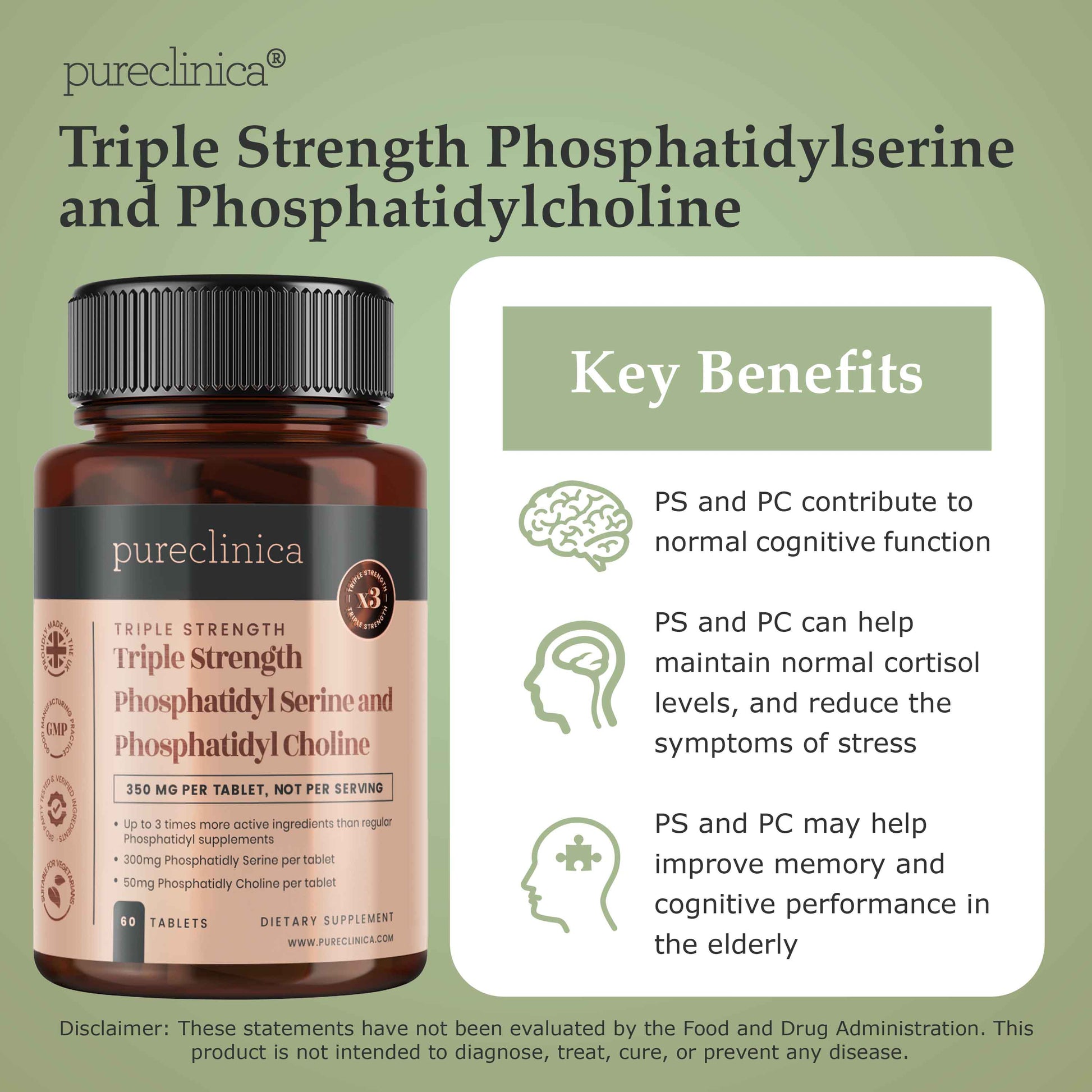 • A 3X strength solution providing 300mg of Phosphatidylserine and 50mg of Phosphatidylcholine per tablet