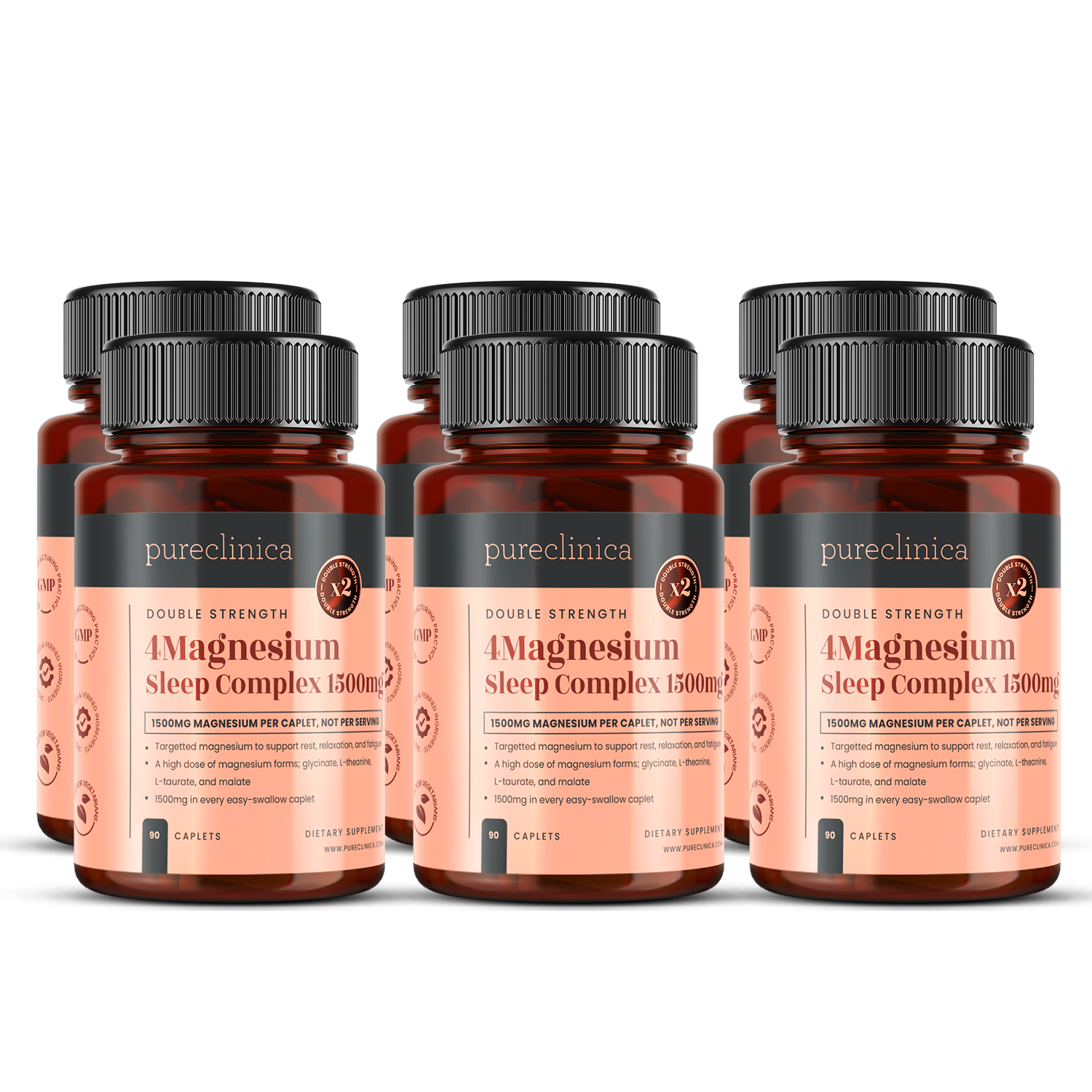Each caplet delivers 1500 mg of fully-reacted magnesium; bis-glycinate, malate, L-taurate, and L-theanine.
