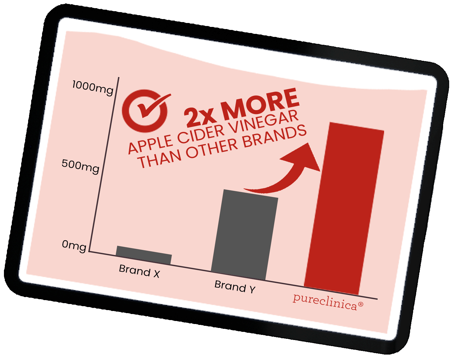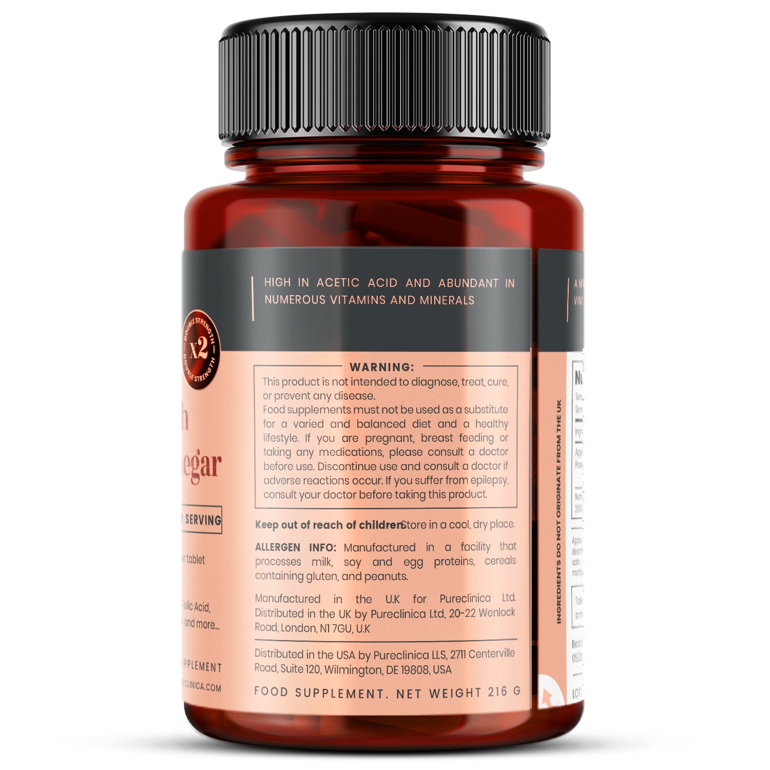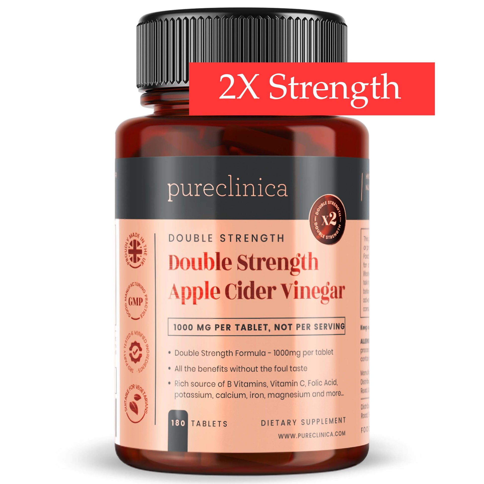 Each tablet of our Double Strength Apple Cider Vinegar packs a powerful 1000mg of pure apple cider vinegar, setting a new standard. Unlike regular strength ACV that typically contains just 500mg of ACV, our formula delivers 1000mg in just one tablet.