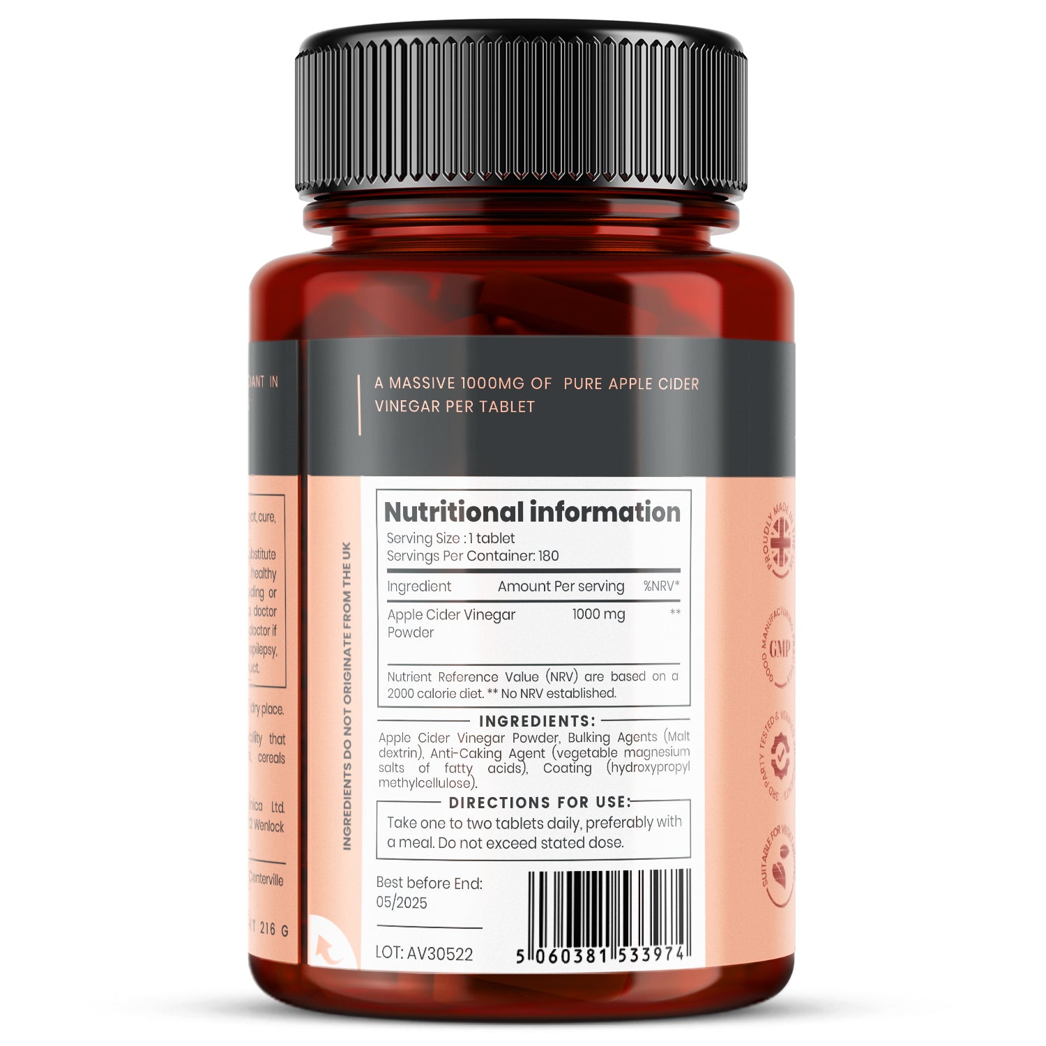 Each tablet contains 1000mg, twice the quantity of active ingredient compared to regular strength Apple Cider Vinegar supplements.